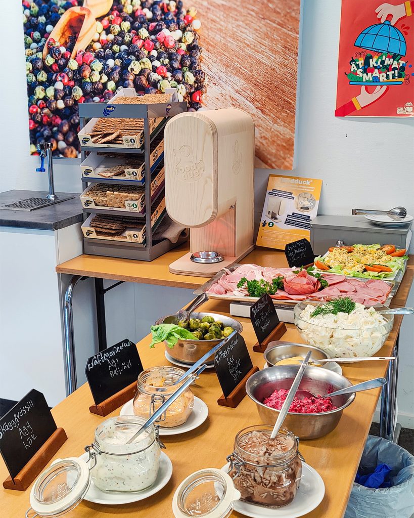 FOODDUCK® yhdistää hygienian, käytännöllisyyden ja kestävän kehityksen tavoitteet konkreettiseksi innovaatioksi ja arjen ratkaisuksi. Automaattinen annostelija vähentää levitteiden turhaa kulutusta, tukee ilmastoviisaampaa toimintaa ja parantaa ruokapalvelun kokonaistehokkuutta.