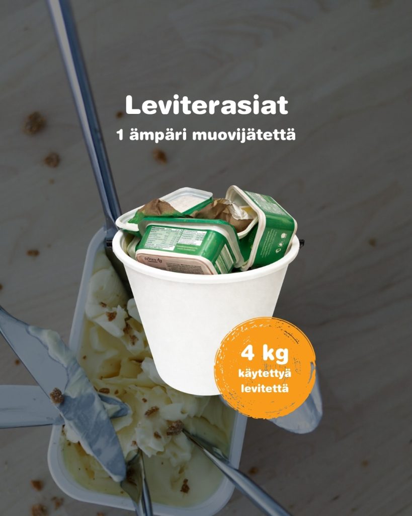 Tulos on silmiinpistävä: yksi jäteämpärillinen täyttyy muovijätteestä, kun levitettä on käytetään: