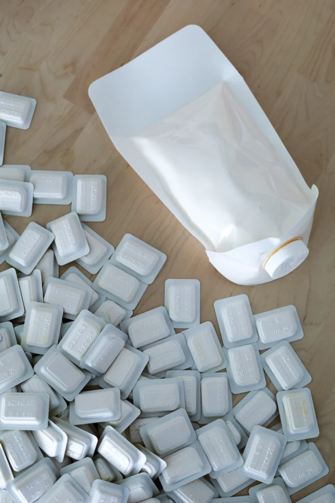 Ajatus on yksinkertainen: mitä enemmän käytetään pieniä yksittäispakkauksia, sitä enemmän syntyy pakkausjätettä. FOODDUCK® korvaa satoja yksittäisiä annosnappeja tai useita muovirasioita yhdellä, resurssitehokkaalla pussipakkauksella.